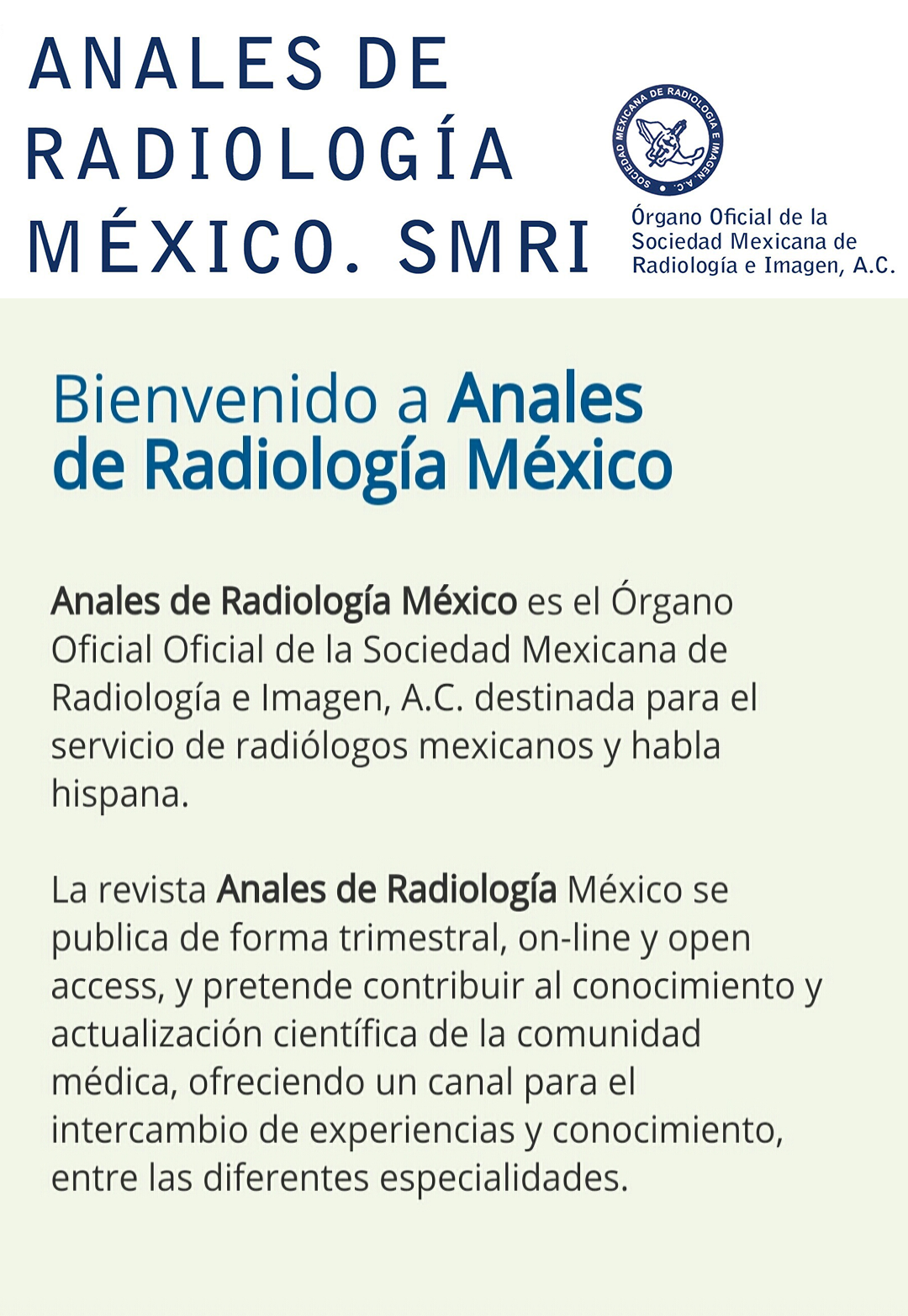 Anales de Radiología, México, es una revista de ciencia que  se crea por la creciente necesidad de difundir los conocimientos entre los Radiólogos mexicanos y de habla hispana. Da la oportunidad a los autores para que sus artículos sean vistos, leídos y referidos, asimismo permite el intercambio de conocimientos entre las diferentes especialidades que con nosotros se apoyan.