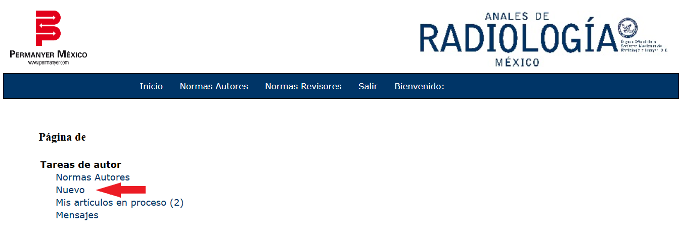 - Elija la opción de nuevo, para iniciar con el proceso del envío del artículo, en cada apartado en la parte derecha del portal le dará las instrucciones: